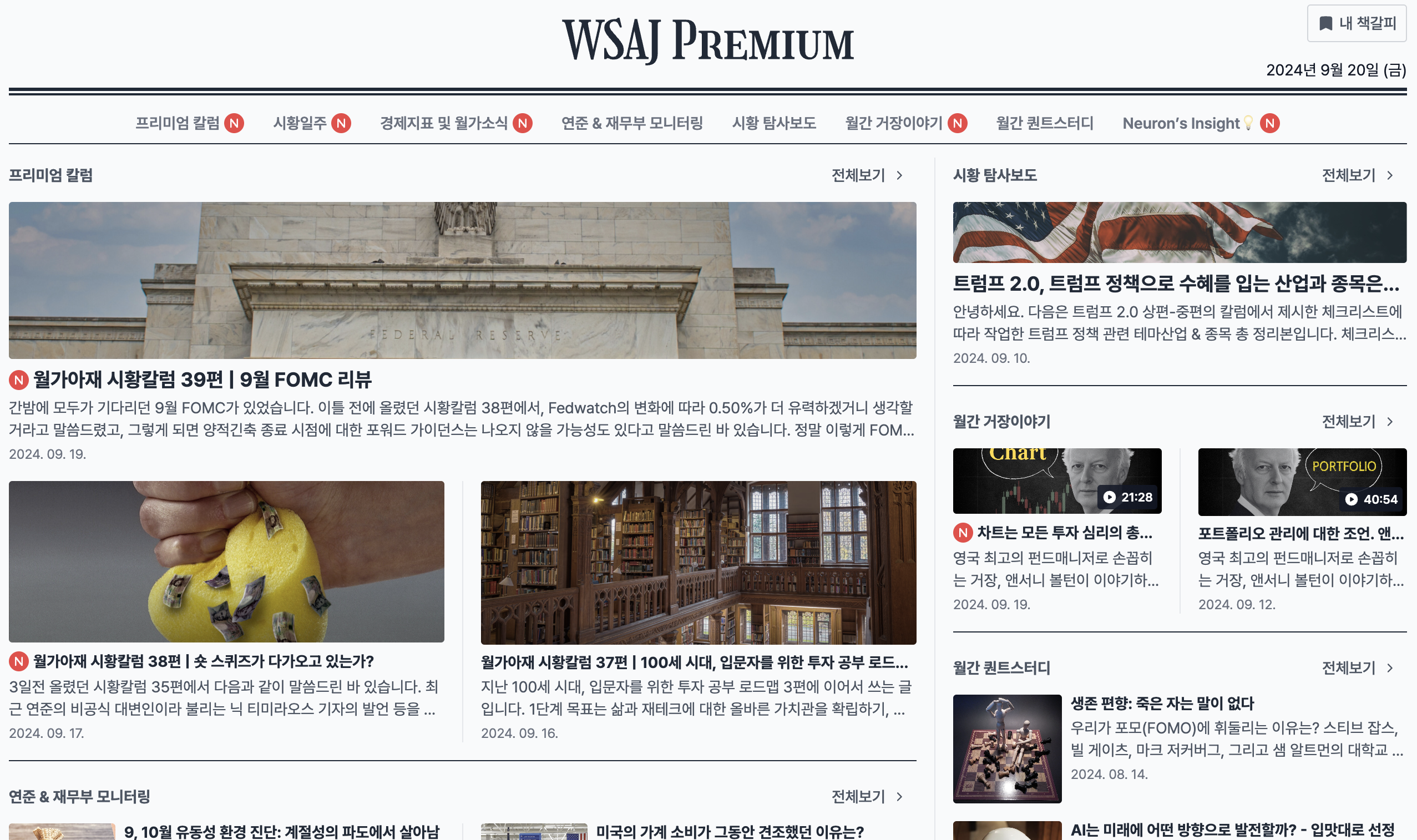 콘텐츠 측면에서는 우선 좀더 투자와 직결되는 시황에 집중하는 콘텐츠를 발행하는 WSAJ 프리미엄 콘텐츠를 볼수 있고