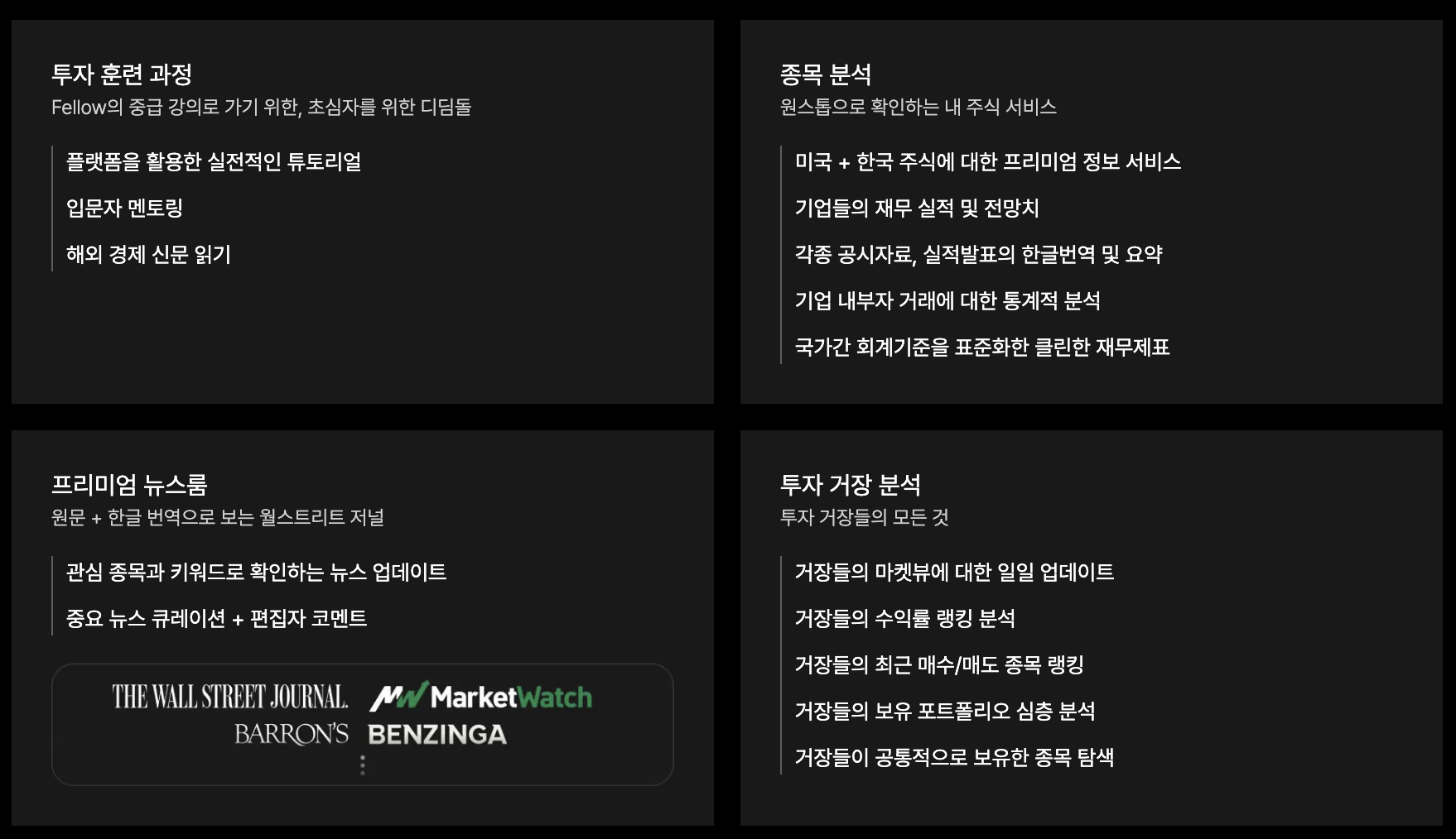 장점으로는 투자에 열정이 넘치는 많은 사람들이 이 플랫폼에 모여있는 만큼 양질의 정보들이 집중되기 때문에 나의 투자생활에도 분명히 도움이 되고 있다는 점 일것이다. 또 뉴로퓨전 측에서도 상당히 열정적으로 서비스를 키워가려는 모습이 인상적이다. 아직은 초창기라서 더 얻을 수 있는 혜택도 분명히 있는 것 같다.